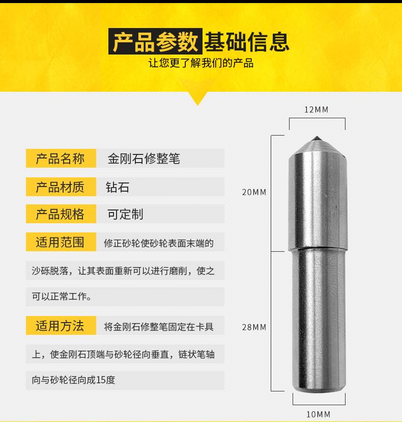 高硬度金刚石砂轮修正笔 精密修整用工具 提升磨削表面光洁度